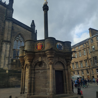 The next morning, we started our day off right. With a Full Scottish meal. We has bacon, eggs, tomato's, beans, toast, potato cakes, and mushrooms (which of course I didn't eat)! The idea of baked beans with breakfast sounded so weird to me at first, but it wasn't bad at all. The beans were nothing like the baked beans we have in the states. Instead of a sweet maple flavor, it tasted more like tomato. After breakfast we went straight to the Edinburgh Castle where we booked a self-guided audio tour. We spent about 4 hours at this castle. All the castles I've been in are usually very pristine with fancy items inside all the rooms. The Edinburgh castle was very different. This castle stands on castle rock and have been occupied since the Iron Age; however, it was primarily used as military barracks. It is not one main building, but a bunch of smaller buildings and memorials on top of one big castle rock. When you visit this castle, you feel like you are visiting a military town. There was so much history at the Edinburgh Castle and they even have a museum within it, where you can learn about the medieval defenses, letters from military personnel, chemical warfare, artefacts, military medicine and more.