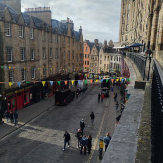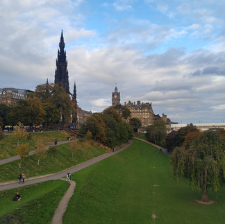 The second part of fall break we went to Edinburgh, Scotland. Sadly, we were only going to be here for two days, but we planed to make the most of it. Edinburgh is completely different from London. London was more of a late-night party scene with a lot more younger adults. However, in Edinburgh, its a more quiet and calmer scene, with a lot more families and older people. When we first got there, we spent a bit of time exploring. We didn't know this at first, but our hostel was right next to Victoria Street, which is famous for the colorful houses and buildings. After wondering around and admiring the gorgeous views, we stopped for lunch and a few of us got Beef and Cabbage (which was delicious.) After we ate, we went to Princess street which is just below the Edinburgh castle, and it has all kinds of shopping and food vendors. We went into all the different shops and got to see some of the traditional clothes that the Scottish wear. While walking around Princess street, we came across a beautiful Cathedral, that was free entry. We spent a big of time in there admiring all the art and architecture. They had a section where you could light candles as well, so I made a donation and then lit a candle.