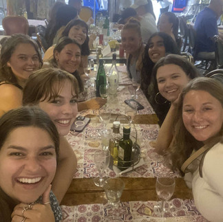 For the wine tasting, we were transported to Tuscany, and got to visit two different vineyards. At both vineyards we learned about and drank Chianti wine. In order for a wine to be considered Chianti, it has to meet many qualifications. This wine must be grown in Tuscany and be at least 80% Sangiovese, with a minimum 12.5% ABV, and needs to undergo at least 24 months of ageing. This wine is considered one of the best quality wines in the world. After a few hours of wine tasting, we came back to Florence for dinner, birthday desert, and clubbing. The girls got Caroline a fruit tart, and we sang happy birthday! We then went to a club called XO which is located in the heart of Florence. While at XO we met other students studying abroad from all over the world! The next morning we went to the Accademia Gallery and saw Michelangelo's David and many other beautiful pieces. We then spent the rest of the afternoon strolling the streets, walking over the Arno river, and eventually went back to Sorrento.