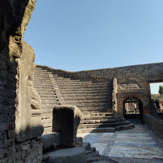 Week 6 of classes was one of my lighter weeks, since I had field trips for two different classes. My Archaeology class was going to Pompeii and my Marine Biology Class was going to the Napoli Turtle Rescue Center and the Aquarium. I had my normal classes on Monday, Drawing on Location and History of the Mafia. Then on Wednesday I went to Pompeii. Pompeii is just a short train ride from Sorrento and it only takes about an hour to get there. We left early in the morning and the met our professor on site. We were given headphones to listen to our professor as she guided us through Pompeii and explained the history behind each section. In 79 A.D. Mount Vesuvius erupted and buried the City of Pompeii beneath tons of volcanic ash and debris. For years, archaeologists worked to find Pompeii using ancient texts. Pompeii was discovered in 1549 when a water channel was being dug, but the city was left entombed. Eventually, in 1748, Pompeii was re-discovered. It has taken years to excavate Pompeii, and there are still sections that are still being excavated. However, a big portion of the city has been cleaned and is open to tourist. When we visited, we were able to walk on the original streets that the ancient Pompeiians used. Interestingly, you can still see the grooves in the streets from the wheels of the carriages that were used as transportation. We also go to visit many sites that used to be homes and vendor booths. One of the vendor booths, which you can still see today is the Thermopolium. This structure was an ancient Roman fast food counter where people could get ready to eat meals, just like what we have today. The food that was most common in these structures were lentils, meats, cheese, eggs, vegetables, and olives. We also got to visit and sit in the amphitheater where there would be plays, productions, and gladiator fights. I highly recommend seeing Pompeii if you are ever in Italy. However, it is best to have a guide for this site, so you can understand what you are looking at. It is also a very hot area with little shade, so Spring and Fall are the best times to go!