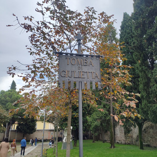 After spending a bit of time writing our letters, we finally sent then off. We still hadn't found a good place to put our locks, because a lot of the locks on the bridges had been torn down. Our next stop was The Tomba di Giulietta. While here we got to see a museums as well as the tomb of Juliet, according to traditions. There was also a garden at the entrance which was beautiful and filled with all kinds of plants and statues. One of the items in this garden was a wishing well. We saw that a lot of people had thrown coins in there making wishes, so we did the same. Many people will get married here in the garden or places there locks on the gates, as a sign that there love will go beyond death. Since some of the locks were from years ago, we decided to leave our here. The entrance gates was very tall, so one of my friends climbed up the wall, and put our lock as high up as it would go. We all got to keep our keys and I put mine on a necklace. Some people through it in the river and others keep it in their jewelry box. Now we get to say we have a love lock in Verona!
